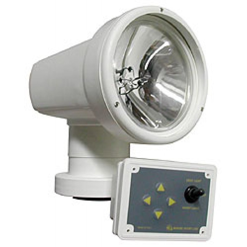 Новинка — прожекторы укомплектованы новыми блок-фарами с увеличенным втрое сроком службы! Дистанционно управляемый прожектор в водонепроницаемом пластиковом корпусе. Ближний и дальний свет (широкий луч до 100 м или узкий луч до 600 м). Панель управления в комплекте. Угол поворота в горизонтальной плоскости: 360 градусов. Угол наклона в вертикальной плоскости: 70 градусов. Высота: 220 мм. Диаметр отражателя: 160 мм. Напряжение питания: 12 или 24 В.