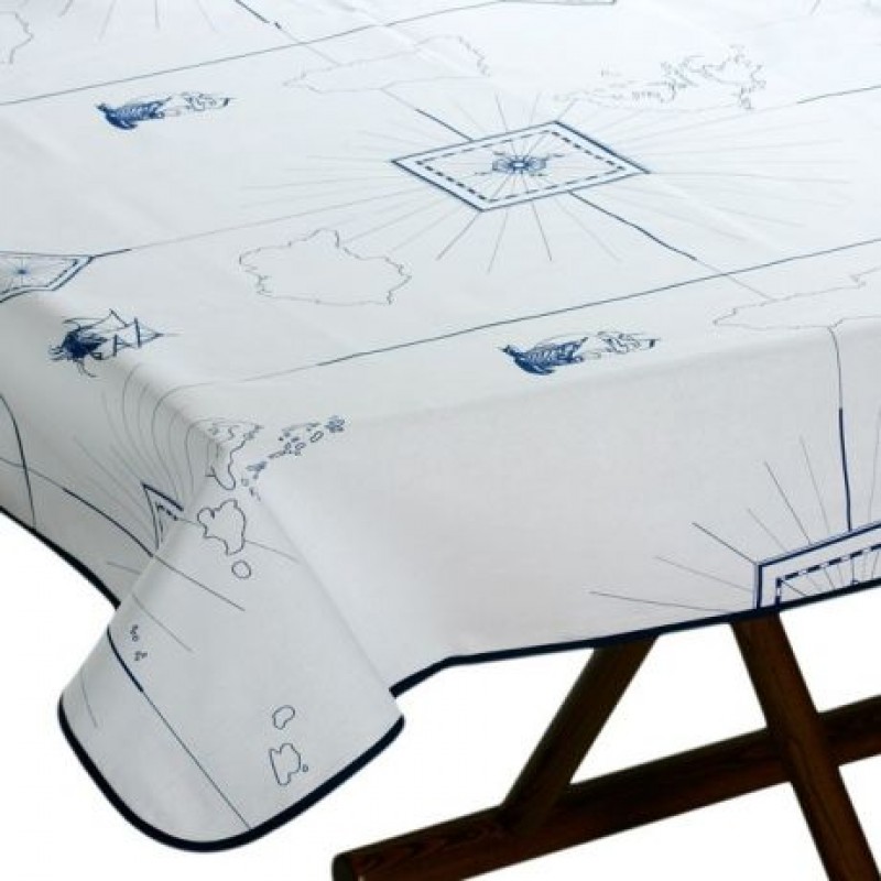 Скатерть из полиэстера и хлопка с тефлоновой пропиткой, препятствующей впитыванию жидкостей и загрязнению. Легко очищается. Цена за 1 шт. Отдельно предлагаются наборы клипс из нержавеющей стали (4 шт) для крепления скатерти к столешнице. Размеры: 115×100, 155×130, 220×155 см. Производитель: «Marine Business», Испания.