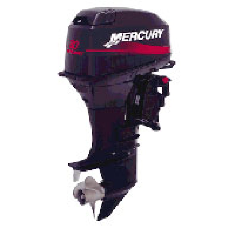 Двухцилиндровые двухтактные двигатели с рядным расположением цилиндров, ручным или электрическим запуском, румпельным или дистанционным управлением и выхлопом через ступицу винта. Электронная система зажигания «Modular CD» обеспечивает уверенный запуск и экономию топлива, сохраняя при этом простоту обслуживания, высокую надёжность и улучшенные эксплуатационные характеристики двигателя. Система охлаждения снабжена термостатом и регулятором давления, благодаря чему поддерживается оптимальный температурный режим работы мотора и достигается надежная работа системы охлаждения. Двигатели поставляются со стандартным (381 мм) и длинным (508) дейдвудом. Все модели снабжены генераторами мощностью 80 Вт. В стандартную комплектацию всех двигателей входит тросик аварийной остановки. В стандартную комплектацию двигателей с электрическим запуском входит привод ДУ. Производитель: «Mercury Marine», США. Мощность на винте: 30/22,4 (л.с./кВт) Макс. число оборотов 4800-5500 Рабочий объем 430 куб. см Диаметр поршня 76 мм Ход поршня 71 мм Передаточное отношение редуктора 1,92:1 Задний ход есть Генератор 80 Вт Регулировка наклона 6 позиций Объем топливного бака 25 л., внешний Длина дейдвуда 381 и 508 мм (короткая и длинная «нога») Вес 52-54 кг Расшифровка маркировки лодочных моторов Mercury