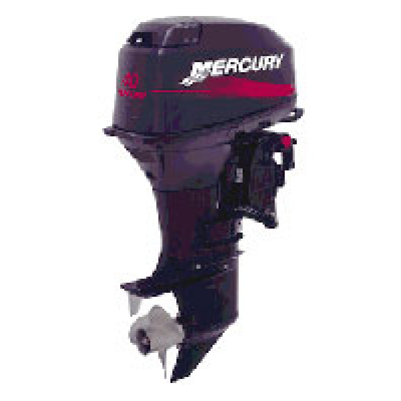 Двухцилиндровые двухтактные двигатели с рядным расположением цилиндров, ручным или электрическим запуском, румпельным или дистанционным управлением и выхлопом через ступицу винта. Электронная система зажигания «Modular CD» обеспечивает уверенный запуск и экономию топлива, сохраняя при этом простоту обслуживания, высокую надёжность и улучшенные эксплуатационные характеристики двигателя. Часть моделей имеют систему автоматического приготовления топливной смеси, позволяющую владельцу мотора отказаться от процедуры смешивания бензина и масла вручную. Система охлаждения снабжена термостатом и регулятором давления, благодаря чему поддерживается оптимальный температурный режим работы мотора и достигается надежная работа системы охлаждения. Моторы снабжены сигнализацией перегрева, низкого уровня масла в расходном баке (кроме двигателей с ручным запуском, не имеющих системы впрыска масла) и ограничителями оборотов. Двигатели поставляются со стандартным (381 мм) и длинным (508) дейдвудом. Подвеска имеет 5 регулировочных позиций для изменения наклона двигателя и позицию для работы на мелководье (часть двигателей поставляются с электрогидравлическим изменением угла наклона). Все двигатели снабжены генераторами мощностью 260 Вт (модели с электрозапуском) или 120 Вт (модели с электрическим запуском). В стандартную комплектацию всех двигателей входит тросик аварийной остановки. В стандартную комплектацию двигателей с электрическим запуском входит привод ДУ. Гребной винт приобретается отдельно. Производитель: «Mercury Marine», США. Мощность на винте: 40/29,4 (л.с./кВт) Макс. число оборотов 4500-5500 Рабочий объем 645 куб. см Диаметр поршня 76 мм Ход поршня 71 мм Передаточное отношение редуктора 2:1 Задний ход есть Генератор 260 Вт (на моторах с электрическим запуском) или 120 Вт (на моторах с ручным запуском) Регулировка наклона 6 позиций Объем топливного бака 25 л., внешний Длина дейдвуда 381 и 508 мм (короткая и длинная «нога») Вес 75 кг Расшифровка маркировки лодочных моторов Mercury