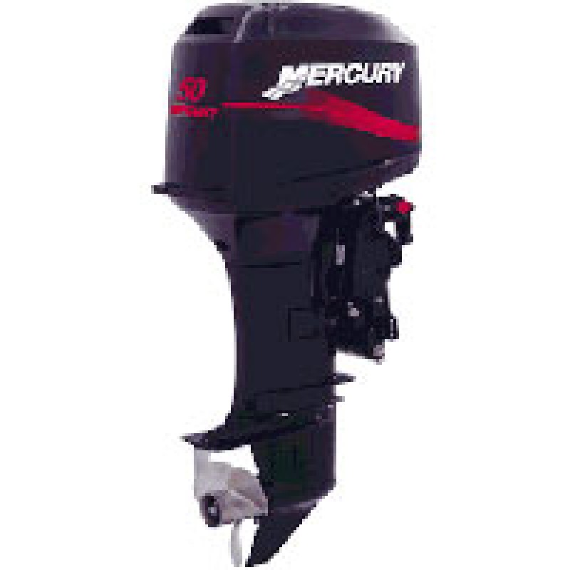 Трехцилиндровые двухтактные двигатели с рядным расположением цилиндров, электрическим запуском, системой автоматического приготовления топливной смеси, дистанционным управлением и выхлопом через ступицу винта. Электронная система зажигания «Modular CD» обеспечивает уверенный запуск и экономию топлива, сохраняя при этом простоту обслуживания, высокую надёжность и улучшенные эксплуатационные характеристики двигателя. Система автоматического приготовления топливной смеси позволяет владельцу мотора отказаться от процедуры смешивания бензина и масла вручную. Система охлаждения снабжена термостатом и регулятором давления, позволяя поддерживать оптимальный температурный режим. Моторы снабжены сигнализацией перегрева и низкого уровня масла в расходном баке. Двигатели поставляются со стандартным (381 мм) и длинным (508) дейдвудом. Подвеска имеет дистанционно изменяемый угол наклона двигателя (пневматический или электрогидравлический). Все двигатели снабжены генераторами мощностью 260 Вт с регуляторами напряжения. В стандартную комплектацию всех двигателей входят привод ДУ и тросик аварийной остановки. Гребной винт приобретается отдельно. Производитель: «Mercury Marine», США. Мощность на винте: 50/37,3 (л.с./кВт) Макс. число оборотов 5000-6000 Рабочий объем 967 куб. см Диаметр поршня 76 мм Ход поршня 71 мм Передаточное отношение редуктора 1,83:1 Задний ход есть Генератор 260 Вт Регулировка наклона дистанционная Объем топливного бака 25 л., внешний Длина дейдвуда 381 и 508 мм (короткая и длинная «нога») Вес 93 кг Расшифровка маркировки лодочных моторов Mercury