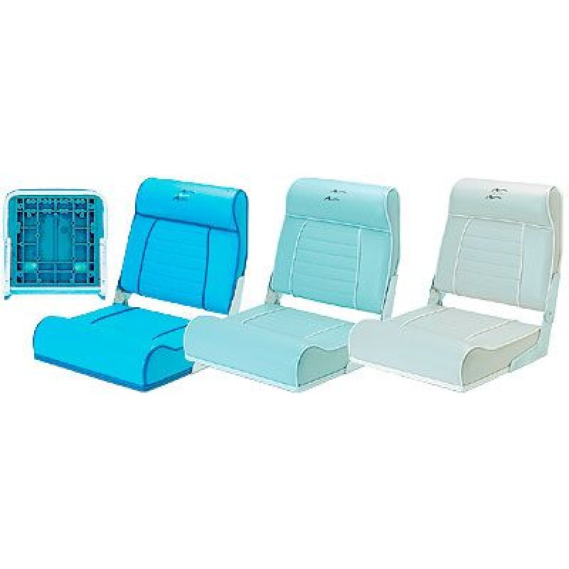 Мягкое сиденье со складной спинкой. Обивка из винила, устойчивого к воздействию влаги и ультрафиолета, не выгорающего на солнце и не впитывающего жидкостей (чай, кофе, соки и вина не оставят на этом сиденье пятен). Размеры (ширина, глубина, высота): 46х43х53 см. Цвета: бежевый, голубой, серый, красный. Производитель: «Garelick», США.