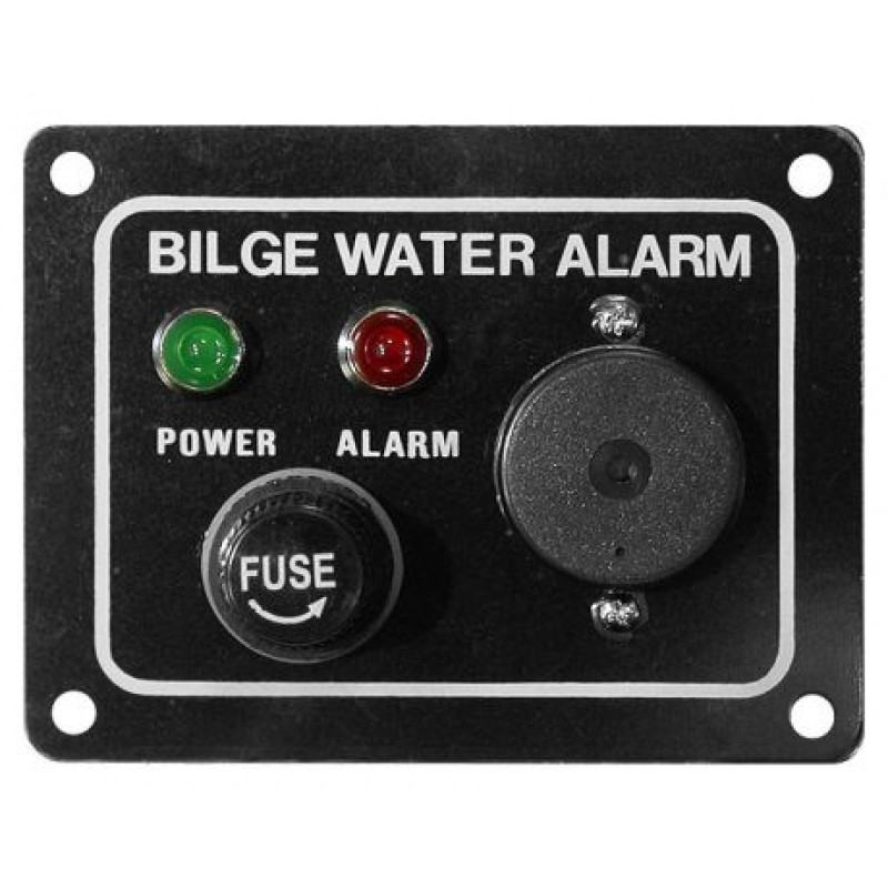 Панель управления трюмной помпой. Оборудована гнездом под плавкий предохранитель, светодиодной индикацией режимов работы помпы и дополнительно — звуковой сигнализацией срабатывания помпы (зуммер). Два варианта — панель для помпы, работающей только в автоматическом режиме и панель с возможностью выбора режимов работы (ручное включение и автоматический режим). Рекомендуется использовать с двумя поплавковыми выключателями, установленными на разных уровнях. В этом случае нижний поплавковый выключатель включает тромную помпу, а верхний — звуковой сигнал. Звуковой сигнал звучит только в том случае, если помпа не справляется и уровень воды продолжает повышаться. Напряжение питания: 12-24 В. Производитель: «ТМС», Тайвань.